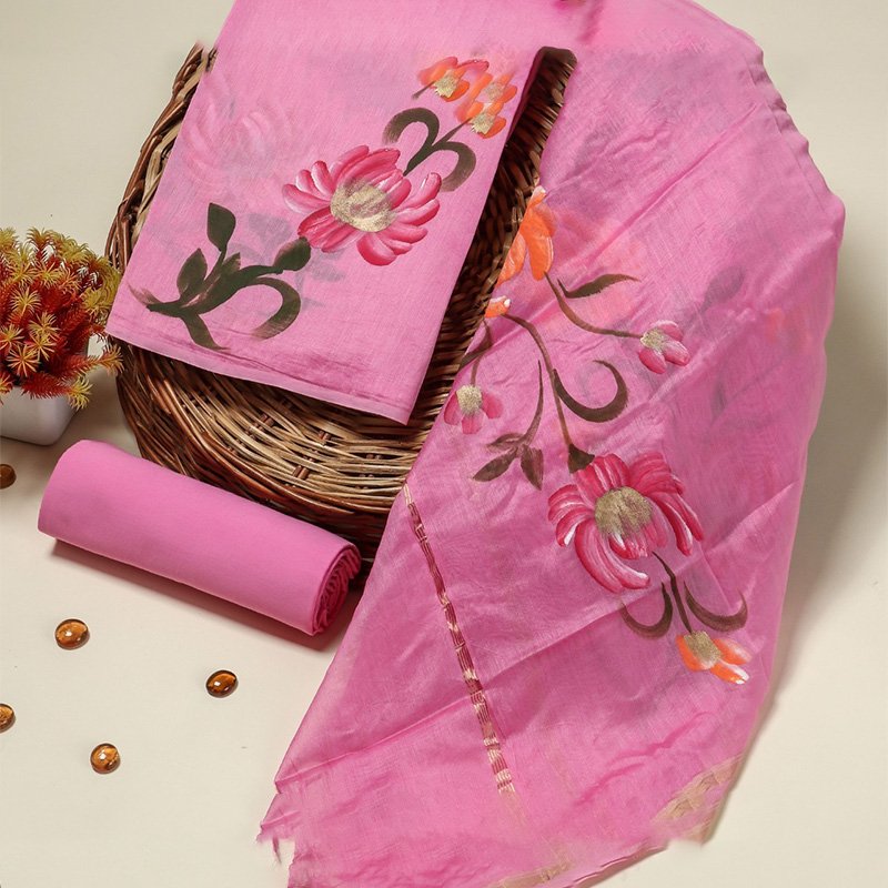 The traditional hand block printing adds a unique charm to each set, ensuring that no two pieces are exactly alike. Whether for festive occasions or everyday sophistication, these dress materials capture the essence of Indian craftsmanship while offering a contemporary twist. Embrace the timeless beauty of Chanderi silk and elevate your wardrobe with these exceptional, handcrafted pieces.